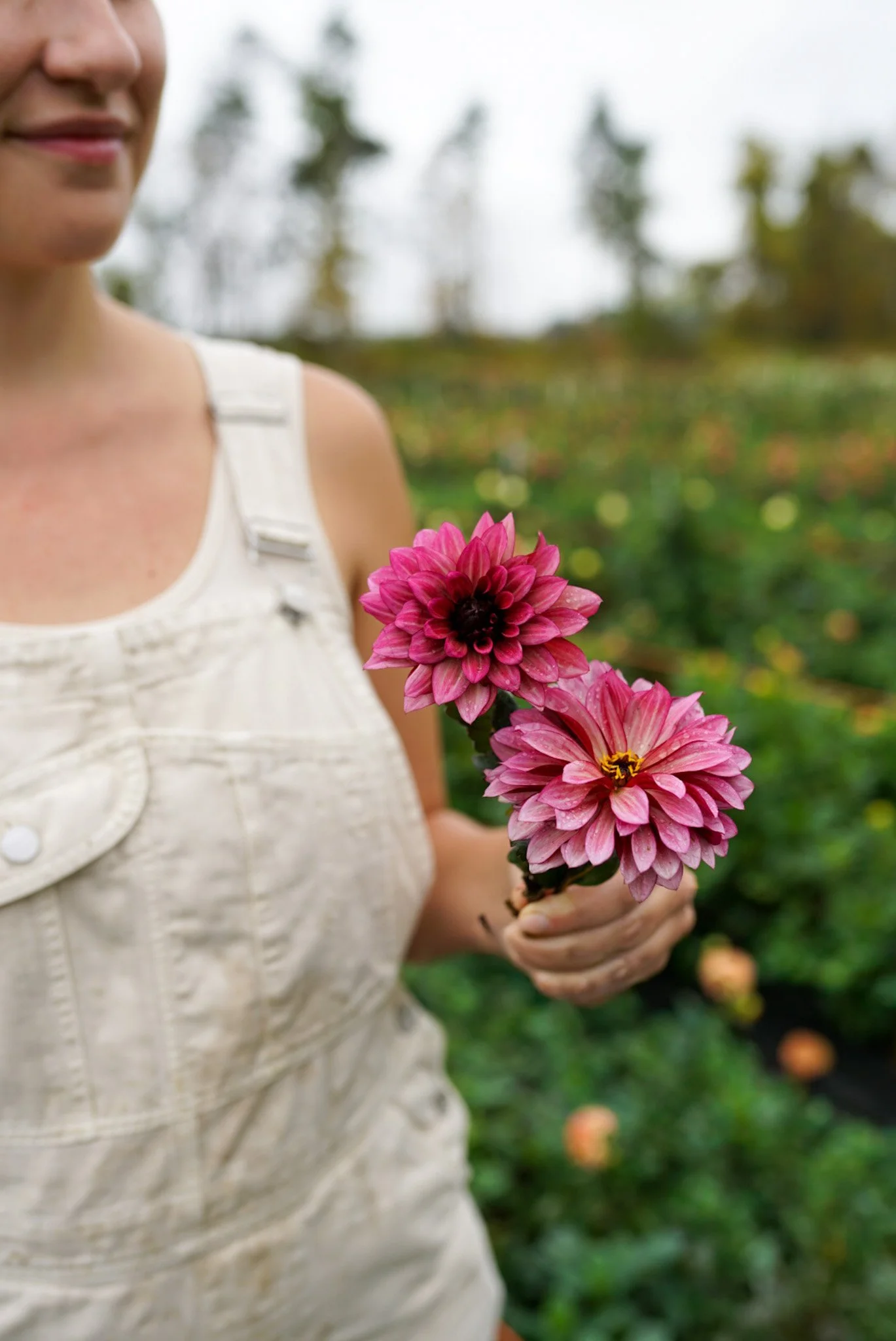 Dahlia variety Valley Porcupine is just…endearing. When you come across this dahlia blooming, you feel like you have found a secret, special treasure. It has gorgeous edging, is a fun starburst shape, and is unlike any other in our collection. Produces a good amount of blooms!